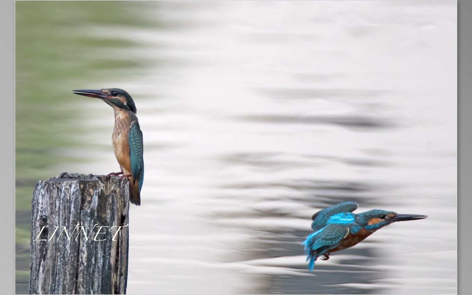 相変わらず年上のカワセミが年下のカワセミがいる杭まで